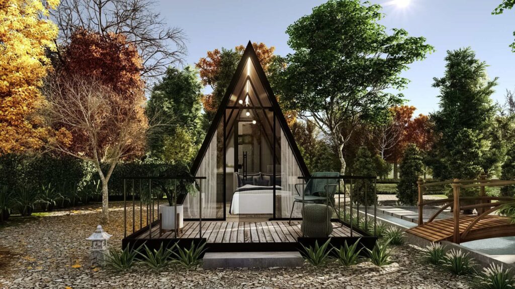 Compacto, charmoso e funcional, é perfeito para quem busca praticidade sem abrir mão do aconchego. Sua suíte acolhedora se conecta a um deck externo (opcional) ideal para apreciar a paisagem e relaxar
